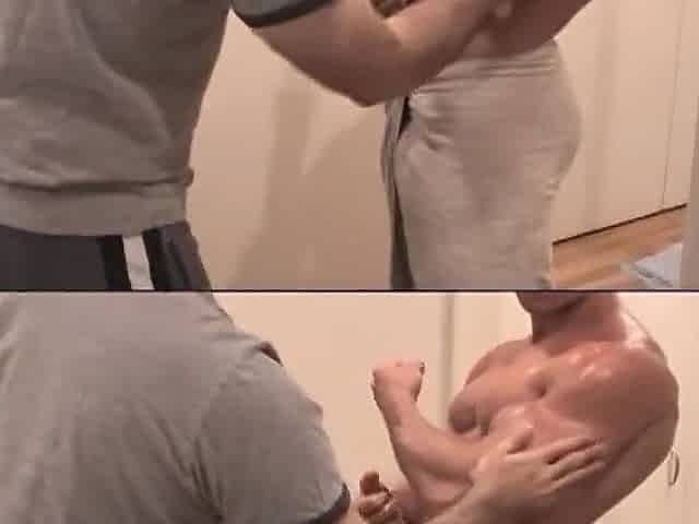 hot guy masturbate cum for girlfriend with oil massage