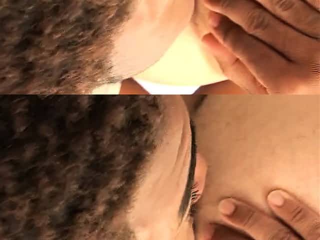Hot gay ebony guy rubs chocolate all over cute guy's ass and back