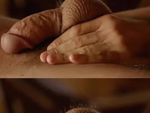 Jackie Starts Using Both Hands To Massage Miles Uncut Cock