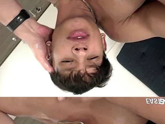 Latin gay daddy fucked during massage by skinny twinks
