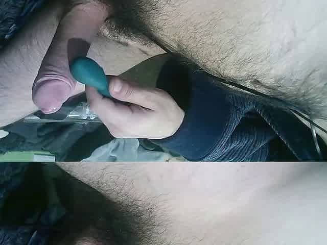Great Cumshot with Vibrator at the Tip of the Cock