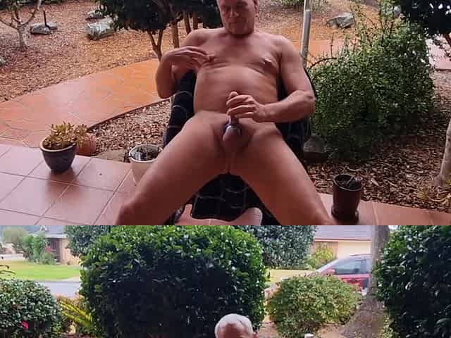 Old Fat Man Masturbate in Red Lingerie and Stockings