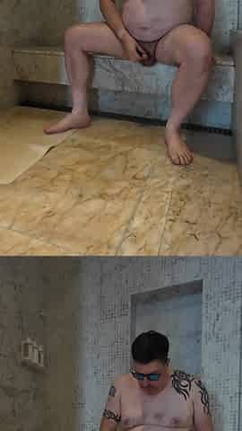 Daddy Jerks off in Shower. Soapy, Uncut, Voyeur Cam