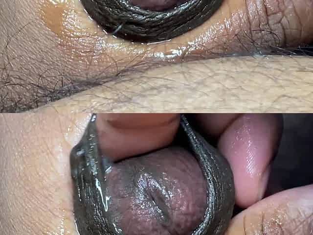 My Hubby Playing with His Brown Dick and Ending up with a Cumshot in Slomo. Creamy White Cumload Oozing Out.yummy Yummy