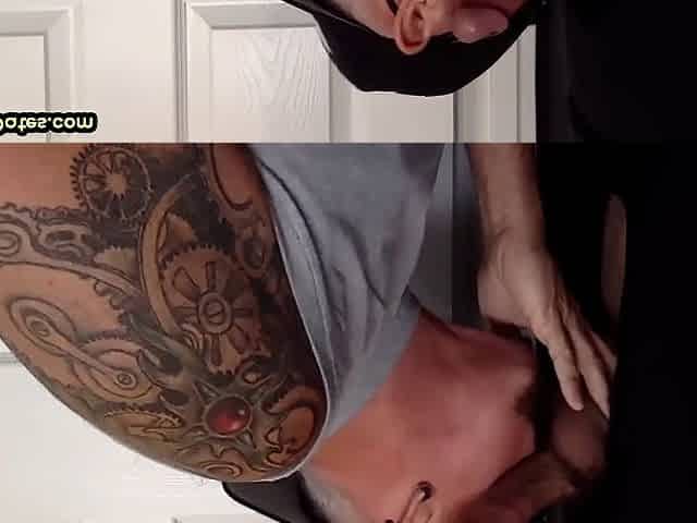 Gloryhole inked gaydaddy amateur sucks cock at home