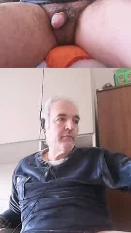 Grandpa locked in chastity and getting sex toy screwed in the booty