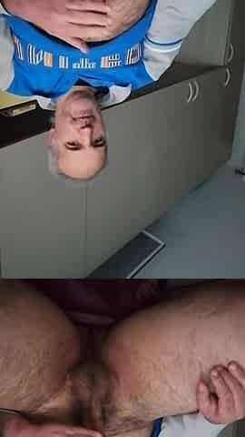 Chubby Bear Middle Aged Shaved Legs Smoothmasturbation Fuck with Black Circular Dildo up Ass