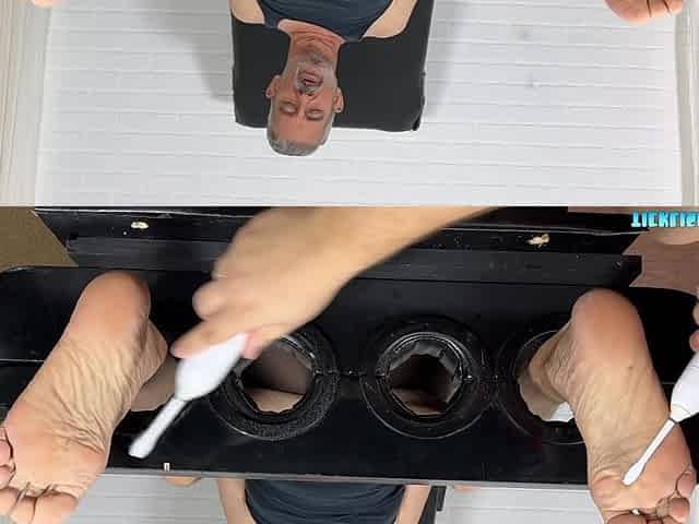 "mechanic visit friend place and played with open wedge heels while was showering "