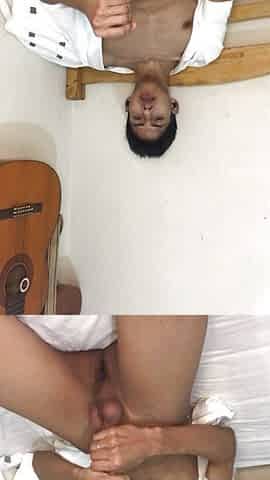 "Handsome dude masturbating alone"