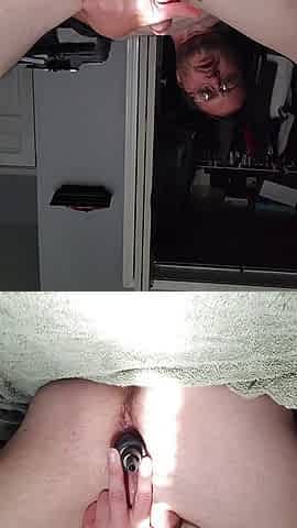 "Masturbating naked playing with a dildo in my ass."