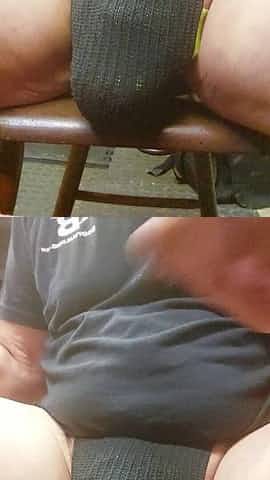 I ride my toy from behind and on top watch as my cock flaps uncontrollably