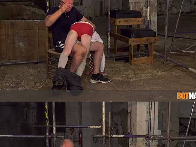 Skinny man enjoys getting his ass spanked by a mature pervert