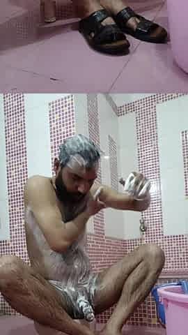 Desi Man Show Self Penis Massage with Morning Bath