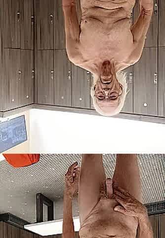 I'm playing with my cock in the gym locker room. See the old many body!