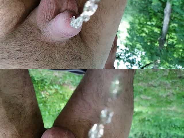Slow motion pissing outside direct at camera