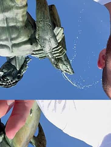 A gracious passerby in a shopping mall sucks a guy's massive jock with cum!