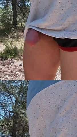 Walking in the forest with a jerked schlong spunk fountain