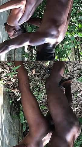 Outdoors Sex Muscular African Top Guy Demolish a Poor Bottom Asshole Inside Bush