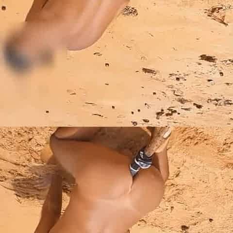 Ladysilva com muito tesao na praia fazendo masturbacao anal , que delicia esse pau arrombando meu cu