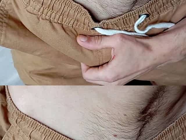 The Guy with His Cock Full of Semen After Cumming I Go Out to the Street with His Stained Pants