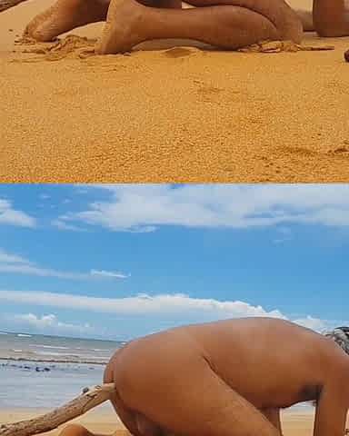Ladysilva on the Beach Taking off His Bikini to Show off His Hot Tanned Ass