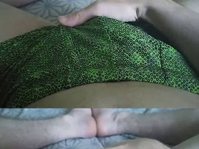 Guy in green swimming trunks massages his dick