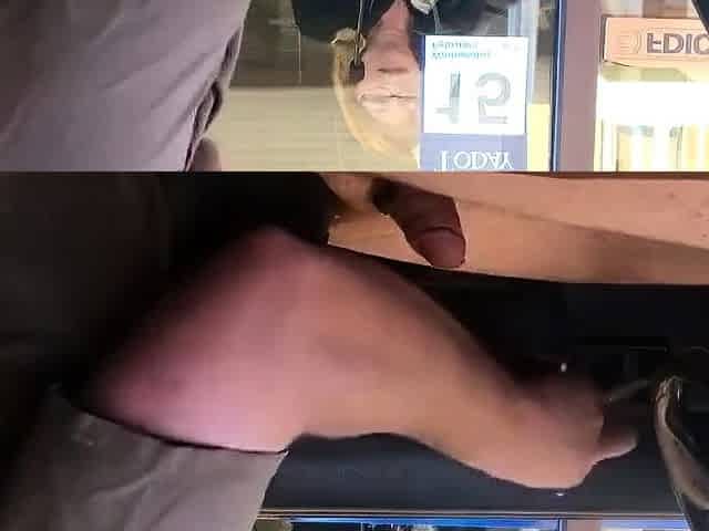 Risky Barber Shop Cum Rubbing to Orgasm with People Nearby