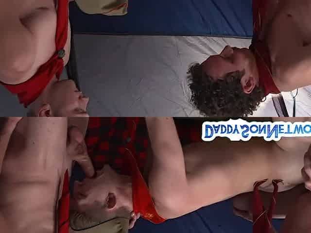 Hairy gay daddy scout fucks twink outdoors under a tent