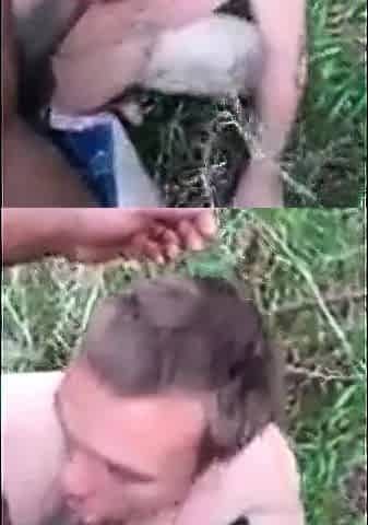 He sucks a big fat cock in the wood