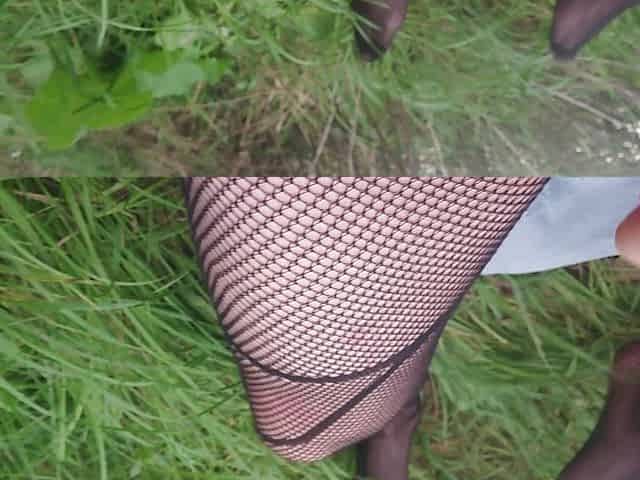"Wanking outdoor in netcatsuit and cumming"