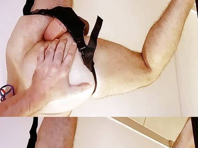 "Showing my ass and cumming in a public restroom"