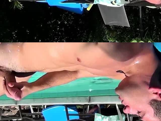 Muscular jock bareback fucks twinks asshole outdoors in the pool