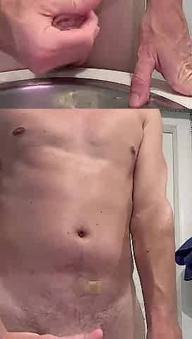 Public Urinals Wanking Wearing Work Clothes, Close up Cum