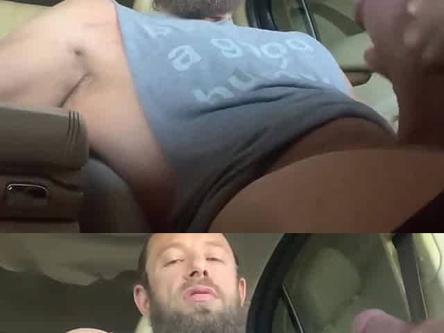 Fat Guy Rubs On Off Parked In His Car Cum