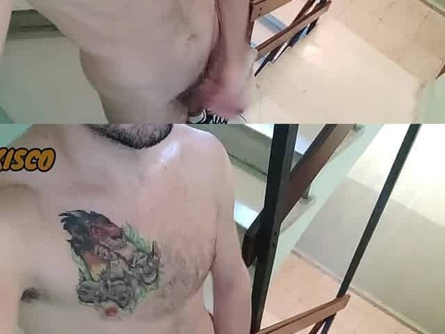 Xisco jerk off between neighbors stairs and cums on top of himself