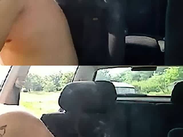 Montage of getting naked in a car and getting off.