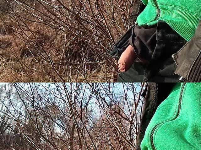 Stroking my big cock outdoors