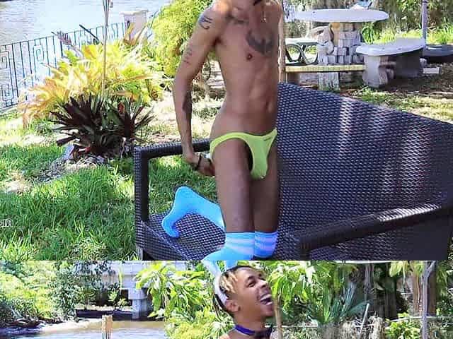 Cheeky twunk bending for straight jock