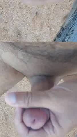 Hiding Outside Behind a Tree to Jerkoff with Huge Cumshot