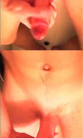 Amateur Boy Squirting Piss on His Step Dad and Sucking His Thick Cock (and Spitting on It) in the Bathroom