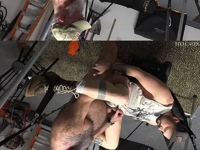 Hairy Young Hung Top Raw Fucks Another Load Into a Cumdump Bear's Sloppy Ass Hole on His Sex Bench
