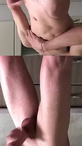 Young Skinny Twink Jerks off and Cums in the Kitchen