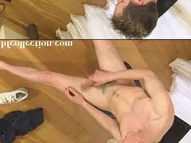 Cute flexible teen man jerks off his cock