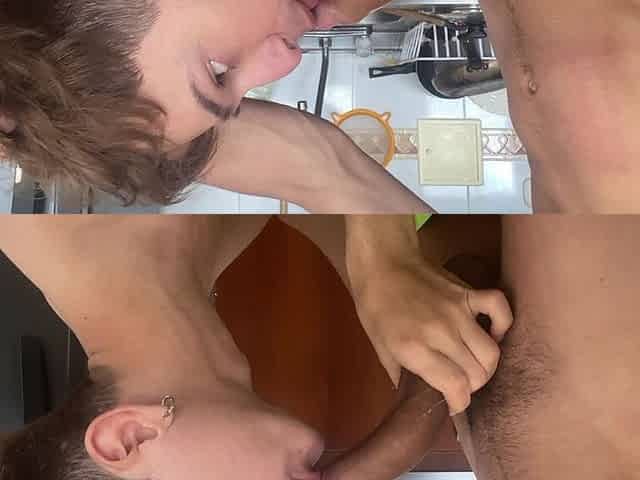 Blonde teen gay dude blows his boyfriend's dick at a hotel
