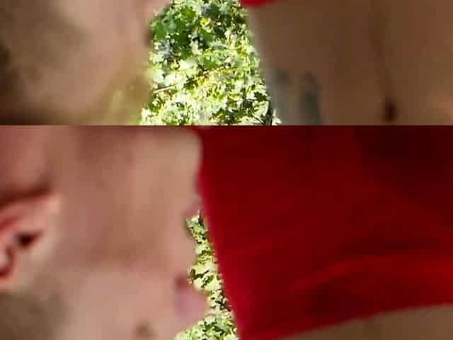 Blonde teen gay dude gets a cumshot from a stranger in a park