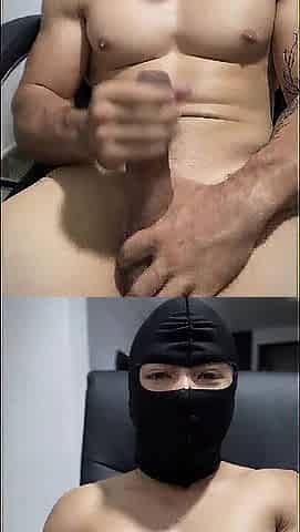Beefy chap with a large dick masturbates on top of u