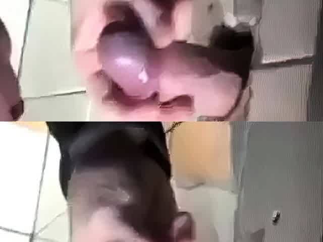 The Gay Boy Went to the Toilet, Turned on the Flash Light on His Mobile Phone, and Started Licking His Private Parts with Spit.