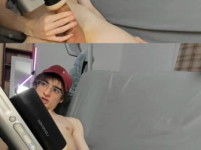 A Young Guy Jerks off Online, Waiting for Someone to Start This Fucking Machine