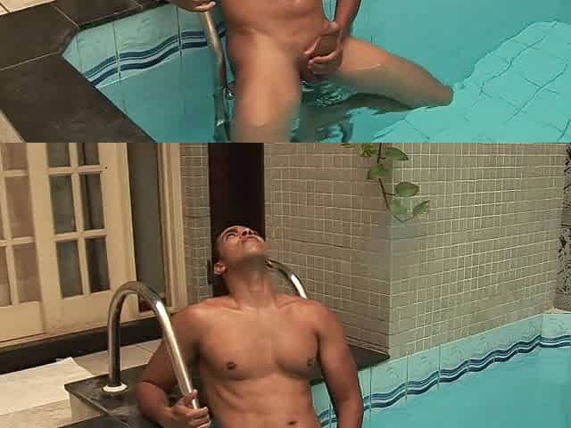 Latin American Iago Ribeiro masturbates in the pool, showing his hot cock and enjoying hot in the pool