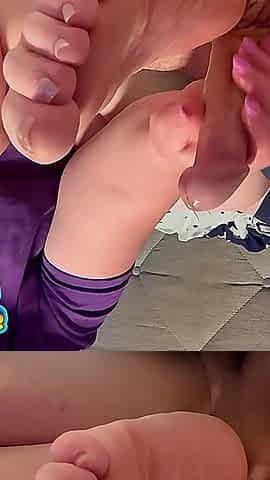 Sexual MILF in Purple Spandex Pvc Lingerie - Blonde